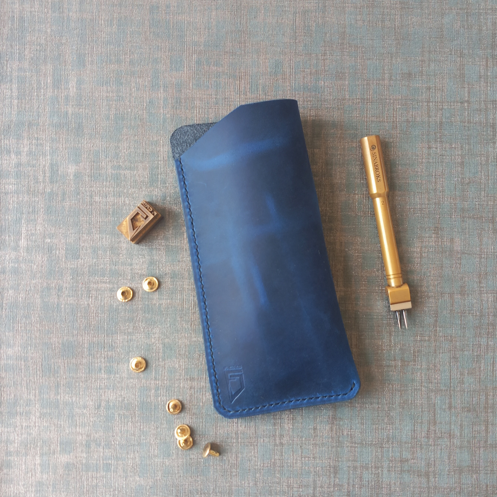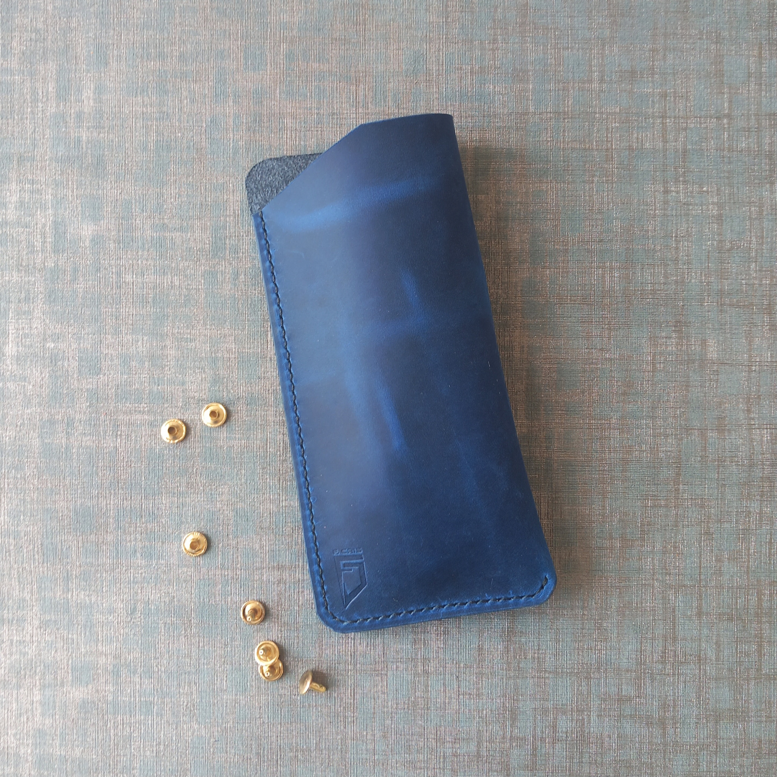 Etui ,toc pentru ochelari realizat din Toc albastru din piele naturală, confecționat manual pentru protecție și stil. Perfect pentru ochelarii tăi preferați.