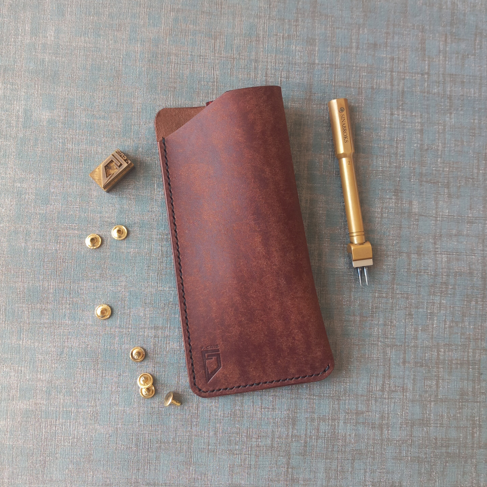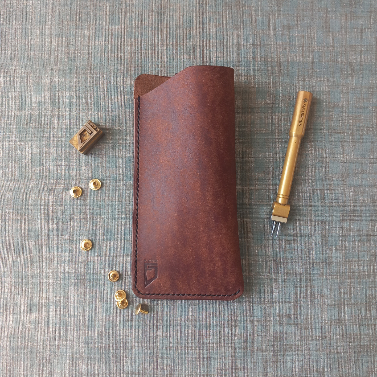 Realizat din piele premium de la tabacaria Carlo Badalassi din Italia, model pueblo de culoare maro tabac fiind cusut manual cu ata de culoare neagra, vinymo