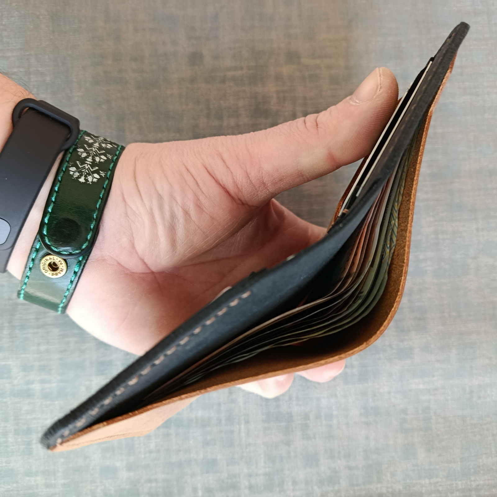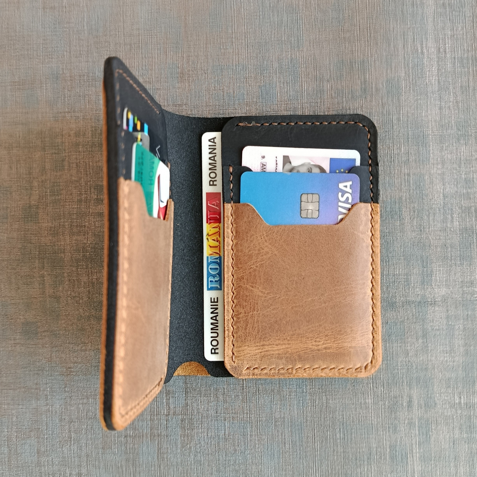 Realizat pentru a tine in el bancnote ,carduri si buletin.