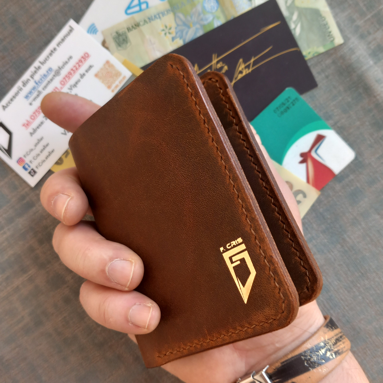 despre F. Cris : Este un brand nou,romanesc care produce accesorii din piele ,lucrate manual iar atelierul se afla in maramuresul istoric.