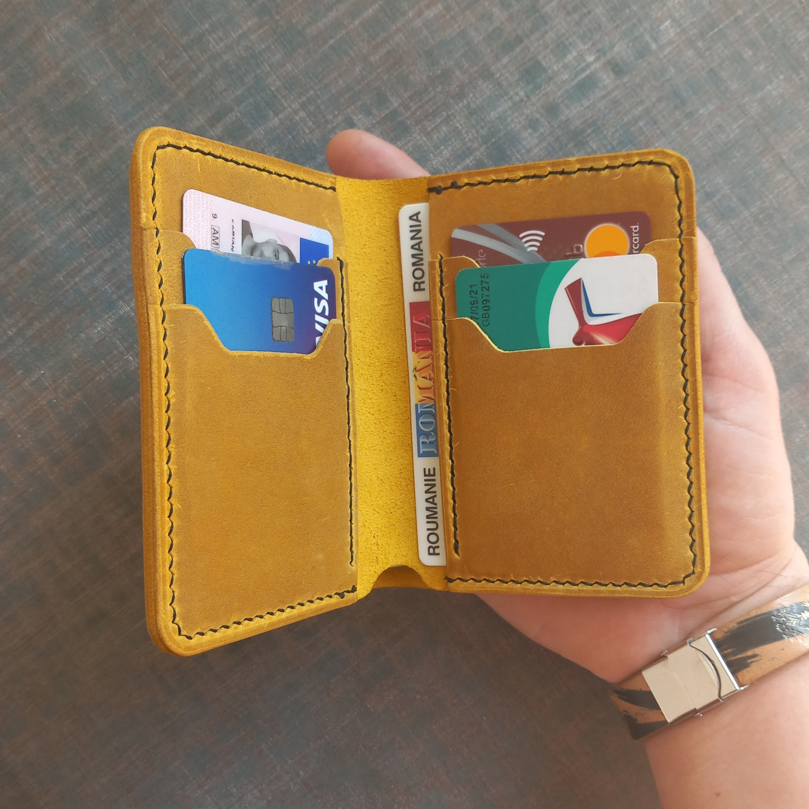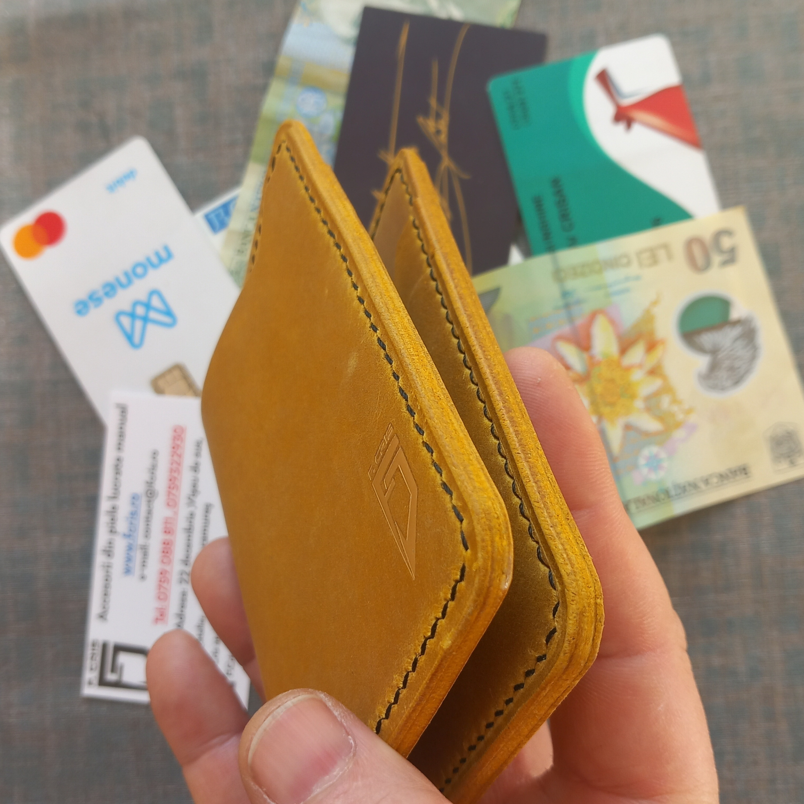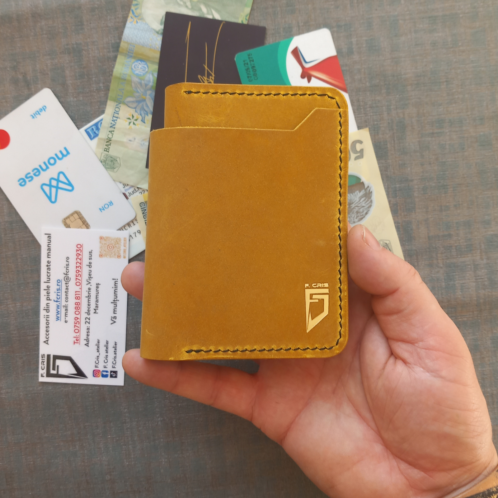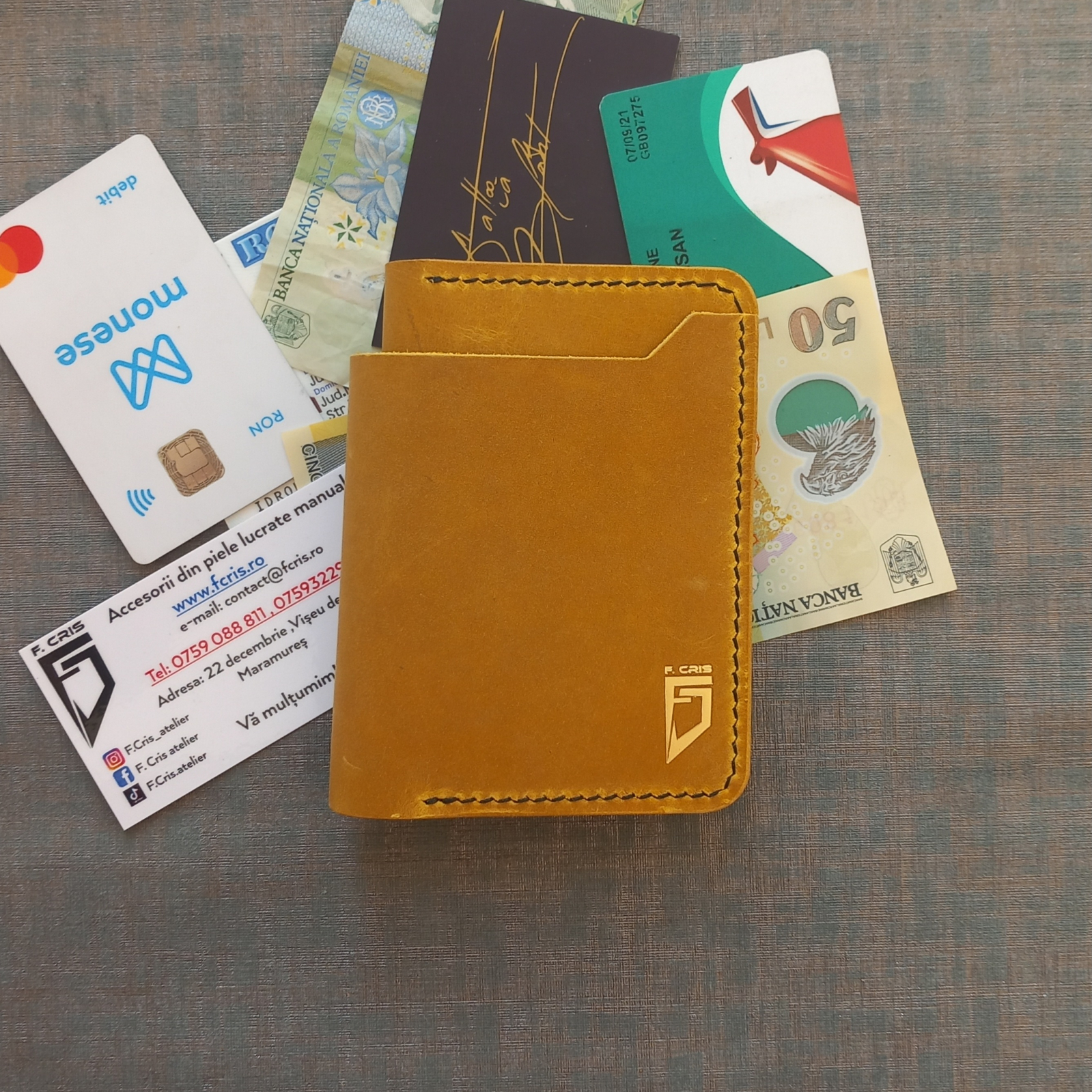 Realizat pentru a tine in el bancnote ,carduri si buletin.
