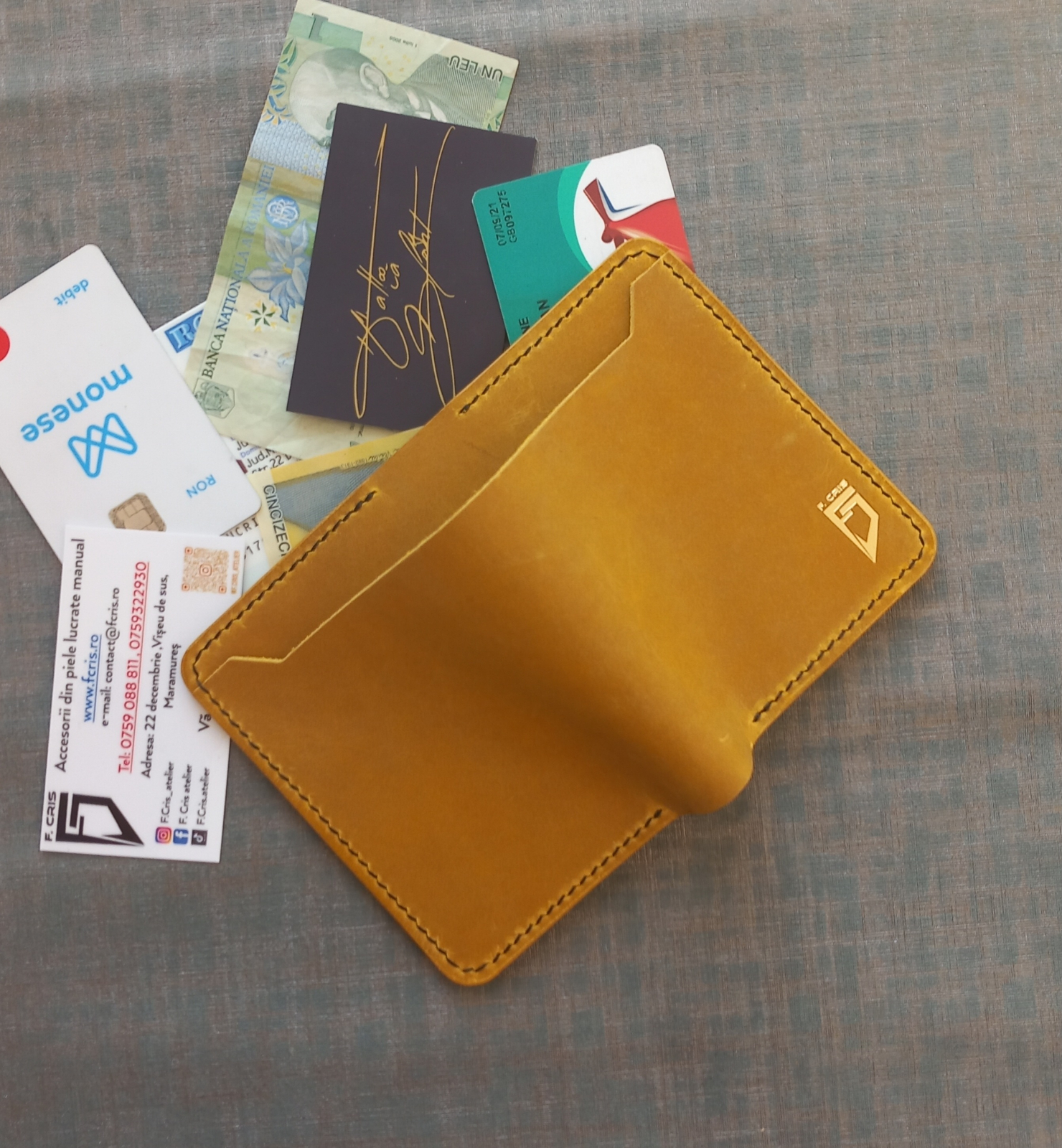Portofel hand made!Lucrat, cusut manual cu ata cerata neagra si finisat manual,realizat din piele naturala.